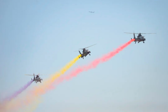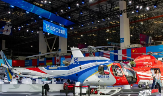 02 低空经济:展会新亮点,产业新动能 本届直博会首次增设低空经济专题论坛,多款军民用直升机、低空飞行器首次亮相。这一创新举措彰显了低空经济在推动产业升级中的重要地位。 参展参演的直升机、无人机及电动垂直起降飞行器共计52架,包括陆军直-10、直-19、直-20、直-20T、直-8L和KVD001、KVD002无人机,航空工业AC312E、AC311A和莱昂纳多AW139、空客H135等机型。 在开幕式飞行表演环节,陆军“风雷”飞行表演队以七机箭形编队通场飞行拉开帷幕,先后向观众演示了“双机对冲”、“搜索营救”、“四机开花”等7个课目的特技飞行动作,赢得现场观众阵阵喝彩。 天津市委常委、滨海新区区委书记连茂君表示,本届直博会参与企业数量再创新高,辐射带动能级持续提升。天津始终将航空产业作为建设全国先进制造研发基地的重要引擎。